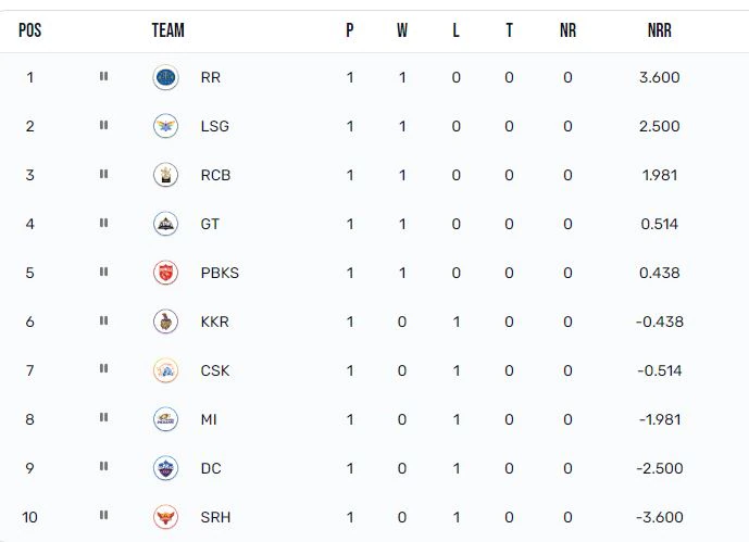 पॉइंट टेबलच आयपीएलच्या पहिल्या तीन दिवसांची स्थिती सांगत आहे. राजस्थान रॉयल्स सध्या अव्वल तर सनरायझर्स हैदराबाद सर्वात खाली आहे. ज्या टिम ने हलगर्जीपना केला त्यांना पराभवाला सामोरे जावे लागले आहे. मग ते हैदराबाद असो की दिल्ली, मुंबई आणि चेन्नईचा असो.